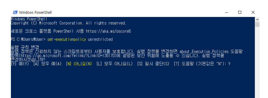 PowerShell 까지 설정 해준 후 다시 vscode 터미널에