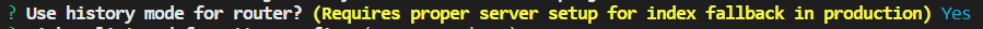 이거는 라우터기능중에 history라고 있는데 그것을 사용할 것이냐. 우리는 사용하자 yes 엔터 그 후