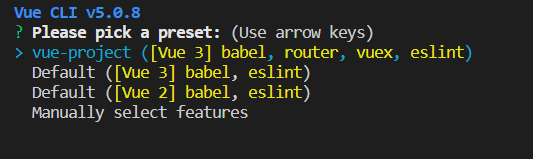 Vue가 처음이면 vue-project가 없을 수도 있다. 이전에 설정해주었던 사람이면 이전 설정처럼 만들거냐는 이야기다.